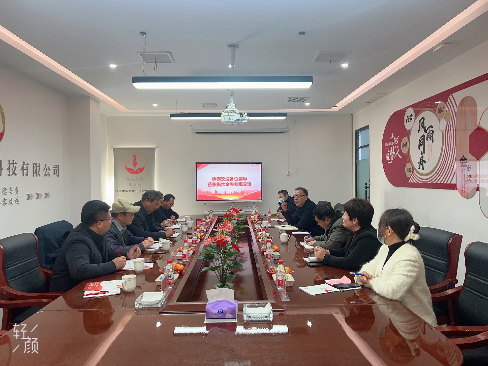 2023年11月23日下午,河南省鎮(zhèn)平縣教育體育局黨委書記、局長郭學中一行5人蒞臨河北金卷教育科技有限公司走訪交流,金卷特邀衡水市桃城區(qū)教育局原黨組成員、衡水市教師進修學校副校長田海潮,衡水市第十三中學原黨委書記、校長王福巨陪同考察??疾靾F一行首先走進河北金卷企業(yè)文化展廳聆聽講解,近距離觀摩試卷編輯、排版等研發(fā)過程,對金卷植根于衡水**教育資源、把脈新高考教育導向、打造負責的教輔的實踐做法表示高度肯定和贊揚。